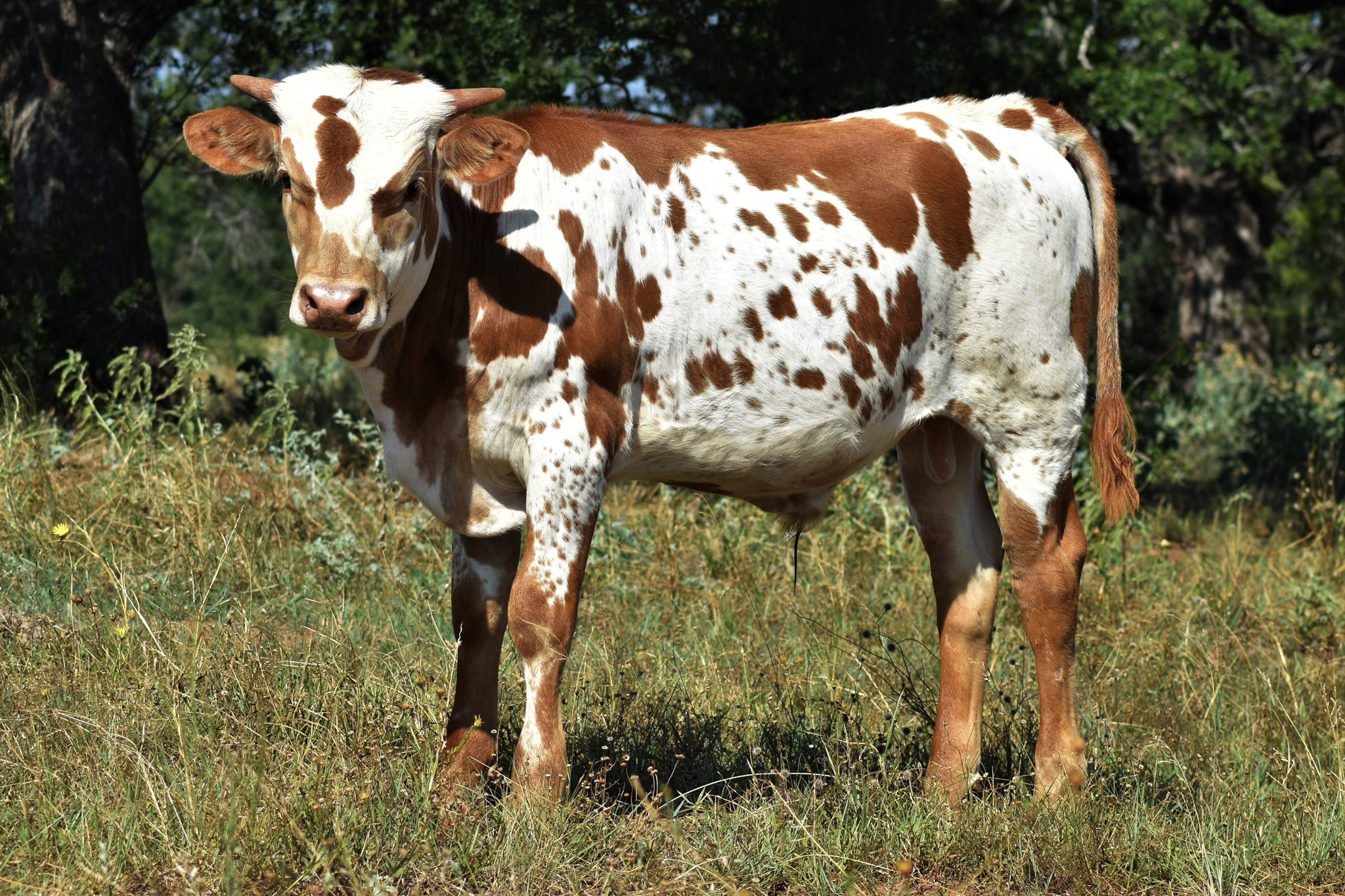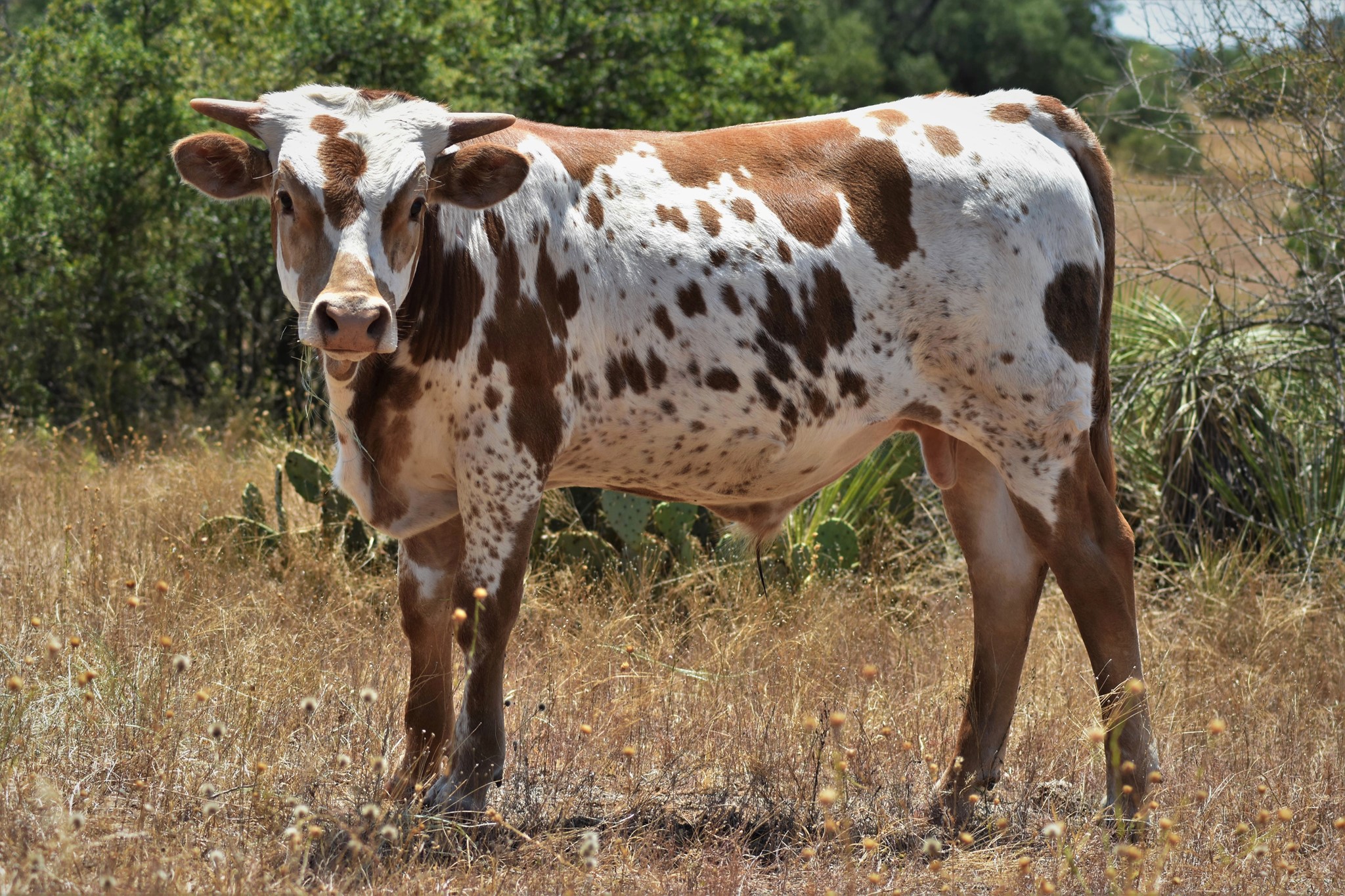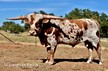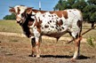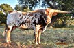 This guy will CATCH your eyes, sired by EXPEDITE and out of a BWANA CHEX daughter. He is beautiful in every way! He is brindled all over, BLUE ROAN and multi color, built like a tank with extremely nice conformation, thick boned, perfect disposition, and loves to eat cubes out of your hand. HIs very intense pedigree on top and bottom with a daughter of COWBOY UP CHEX as a Great Dam on the maternal side. Take a look at his offspring...they are FABULOUS, thick bones, tall, have great horn direction hooking to begin twist with impressive TTT and undoubtedly lots of color, and excellent conformation. He is such an outstanding producer he has worked himself out of a job; we have retained several of his offspring and is very difficult to let go. He is sure to be an asset to your program in every way!