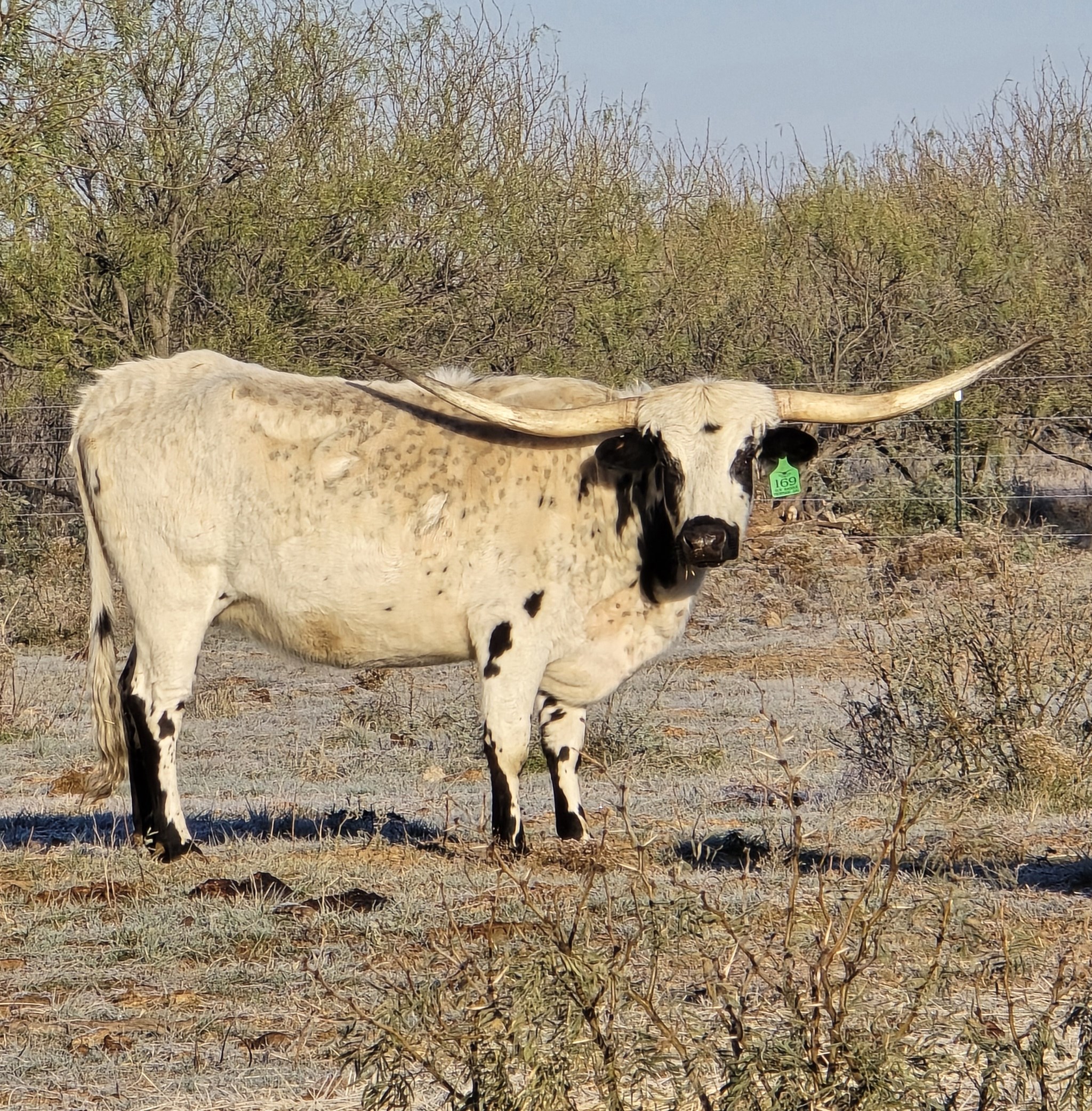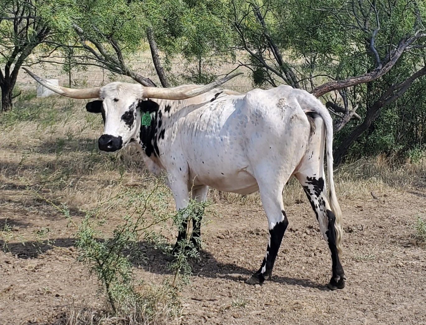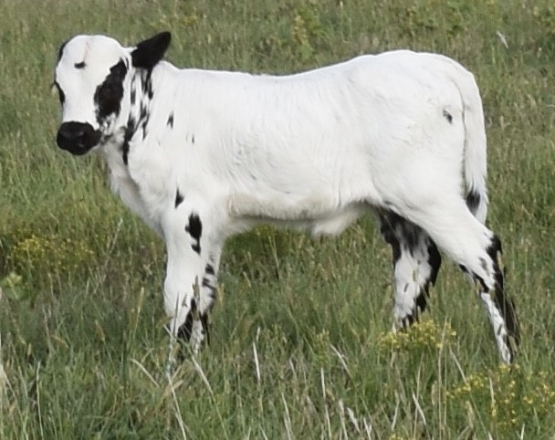 A BLACK AND WHITE HEIFER WITH A PEDIGREE INCLUDING SADDLEHORN ,RC TSUNAMI 2,CONCEALED WEAPON,TOP CALIBER,TEJAS STAR plus HORSESHOE J EXAMPLE/CHARM,PACIFIC MERMAID, DELTA VAN HORNE and STARLIGHT.