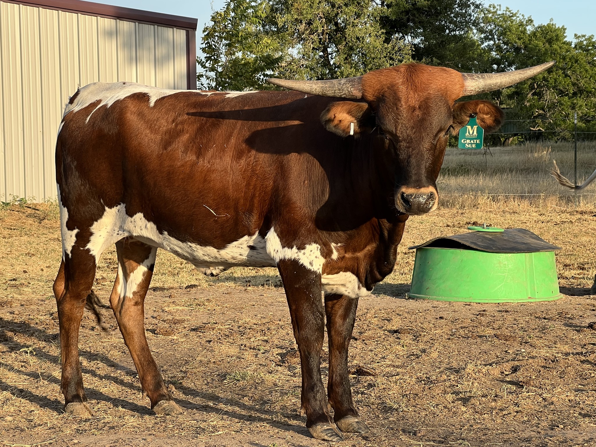 M7 Grate Sue is a futurity winning heifer with legends Lady Grate, 2X Rio Catchit, Cowboy Tuff, Cowboy Catchit, Night Safari, Lady Monika and Hunts Respected Jenny, mother of legendary Jammin Jenny! WS Hydro bull calf at side.