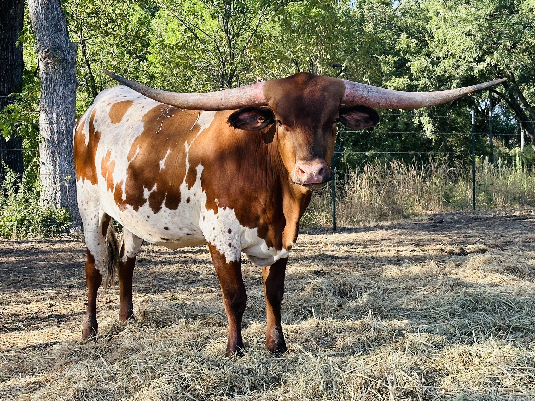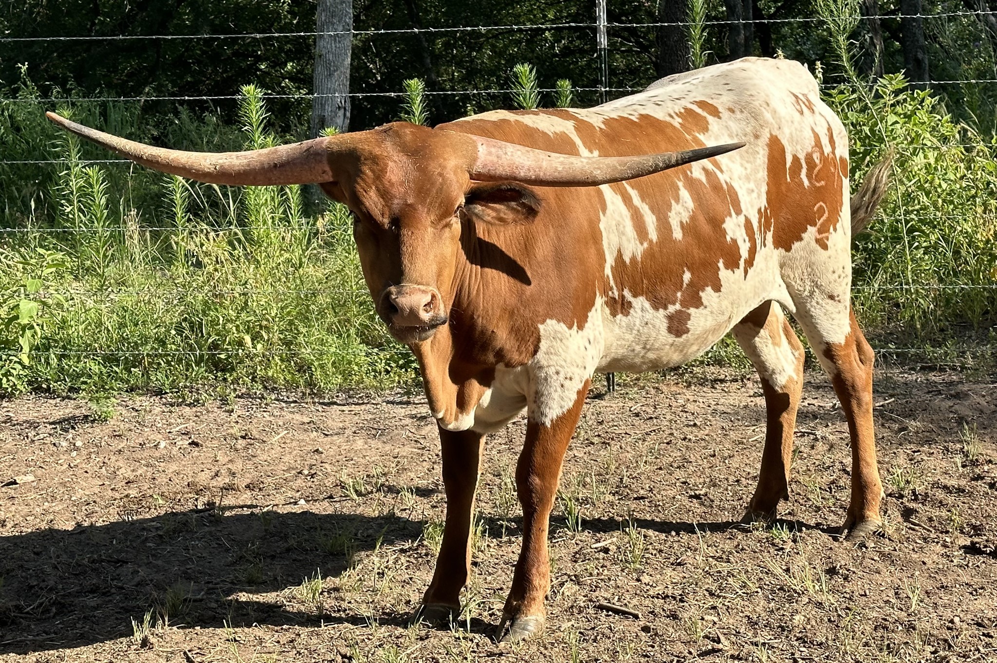 Multiple Futurity champion M7 Fiesty Misty is an amazing young producing cow. She had her second calf before 3 years old. Unfortunately she broke 6” off at a Futurity. The good news is she’ll be at M7 forever raising championship progeny!