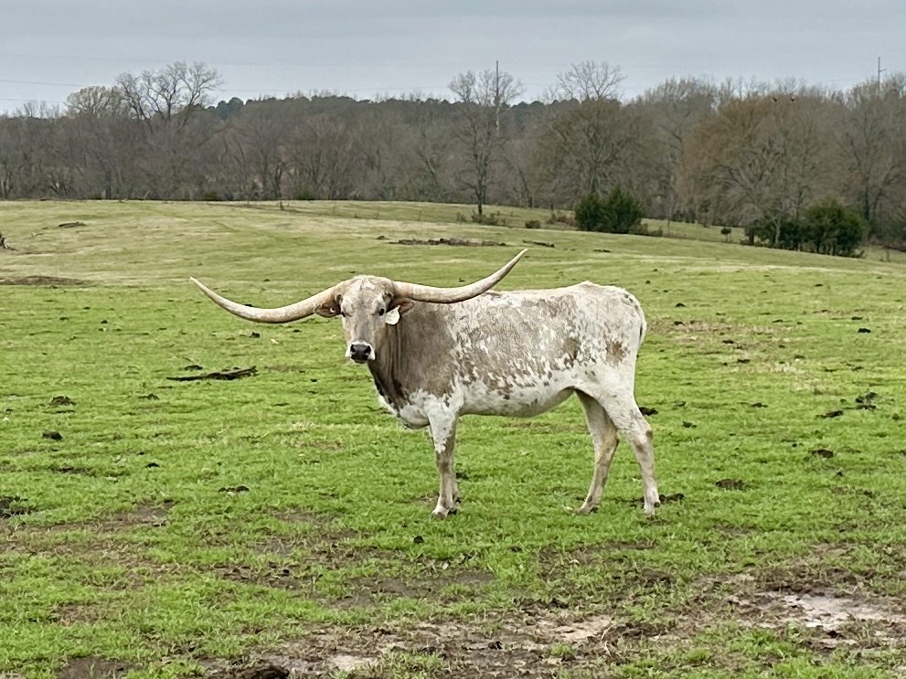 Lovely grulla heifer with nice horn growth and direction.