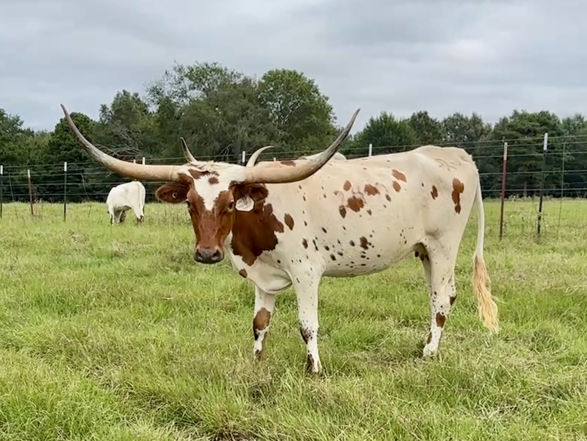 Pretty red and white female with nice horn set and good color.