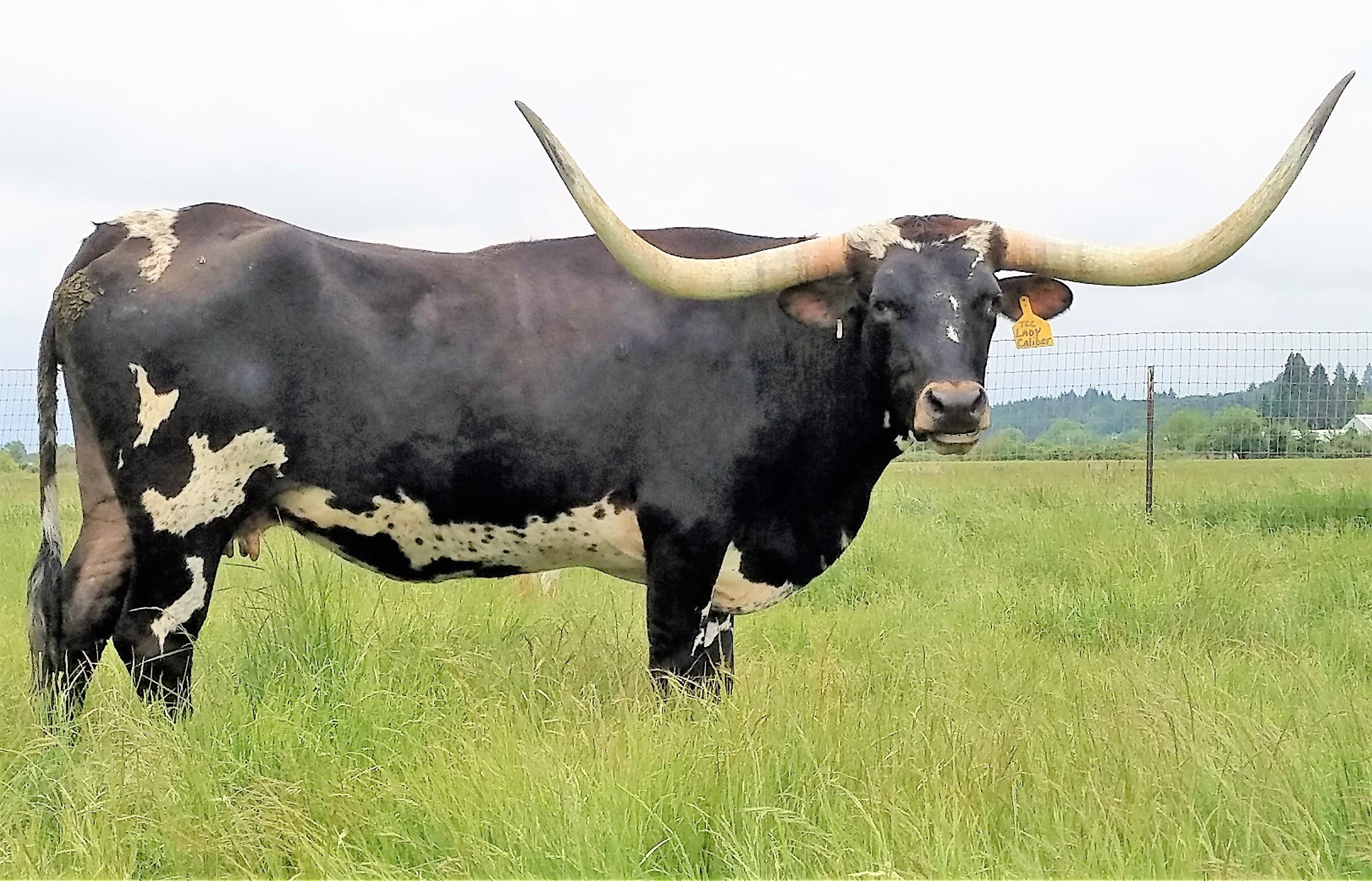 This cow has passed all our expectations. She continues to put on horn, her disposition is great and her color is amazing. Great udder that helps wean big calves.